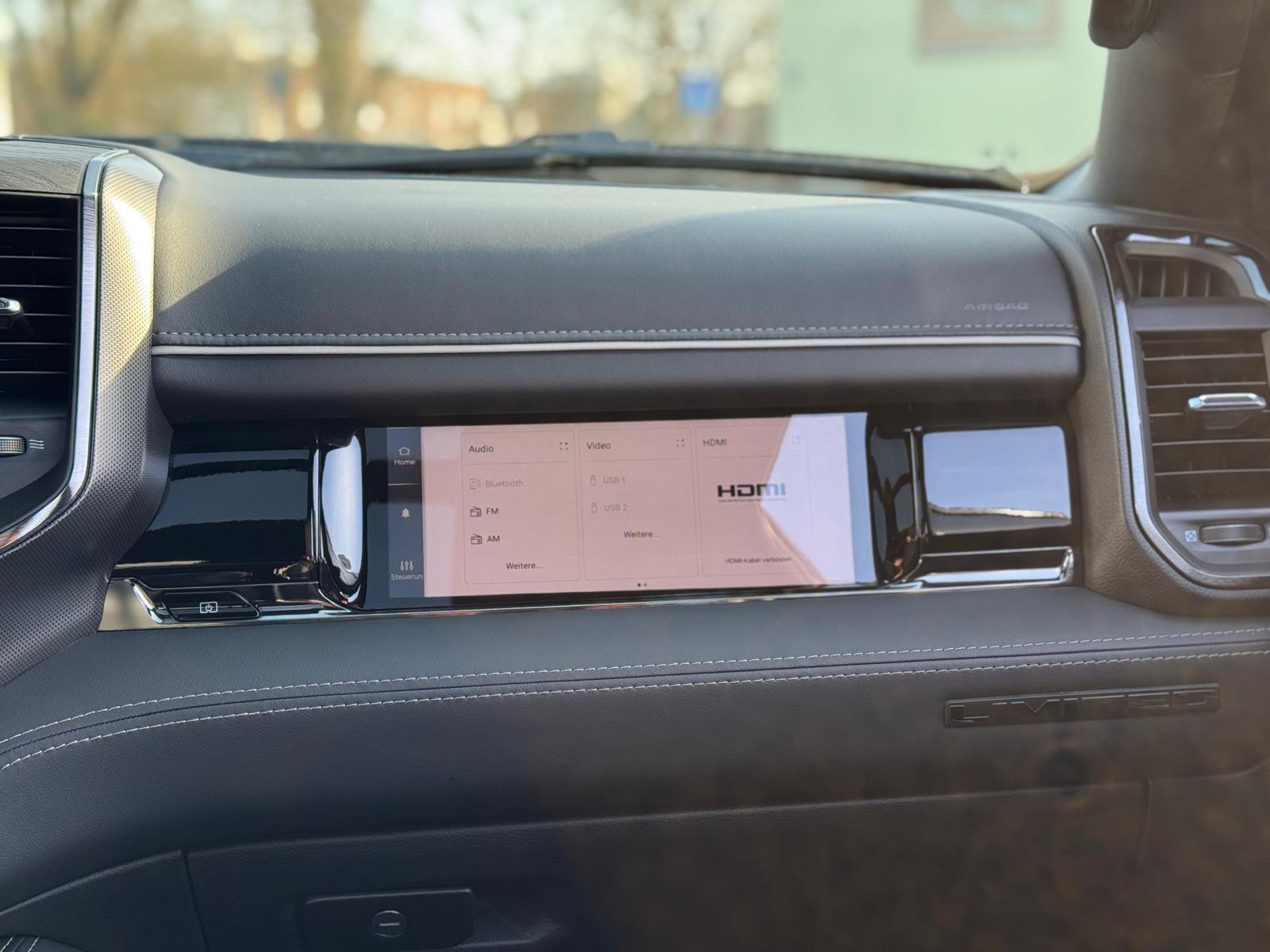 - 14.4" Uconnect 5 mit EU-Navigationssystem, Radio, wireless Apple Carplay und Android Auto, USB-/AUX-Anschluss, Audio-Streaming via Bluetooth, 14.4" Touchscreen